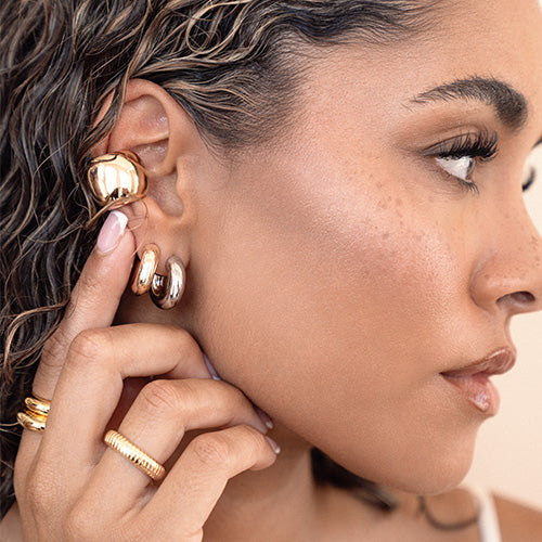 "These hoops are my favorite earrings. I originally got the silver ones in a large and had to come back and get the gold version!"