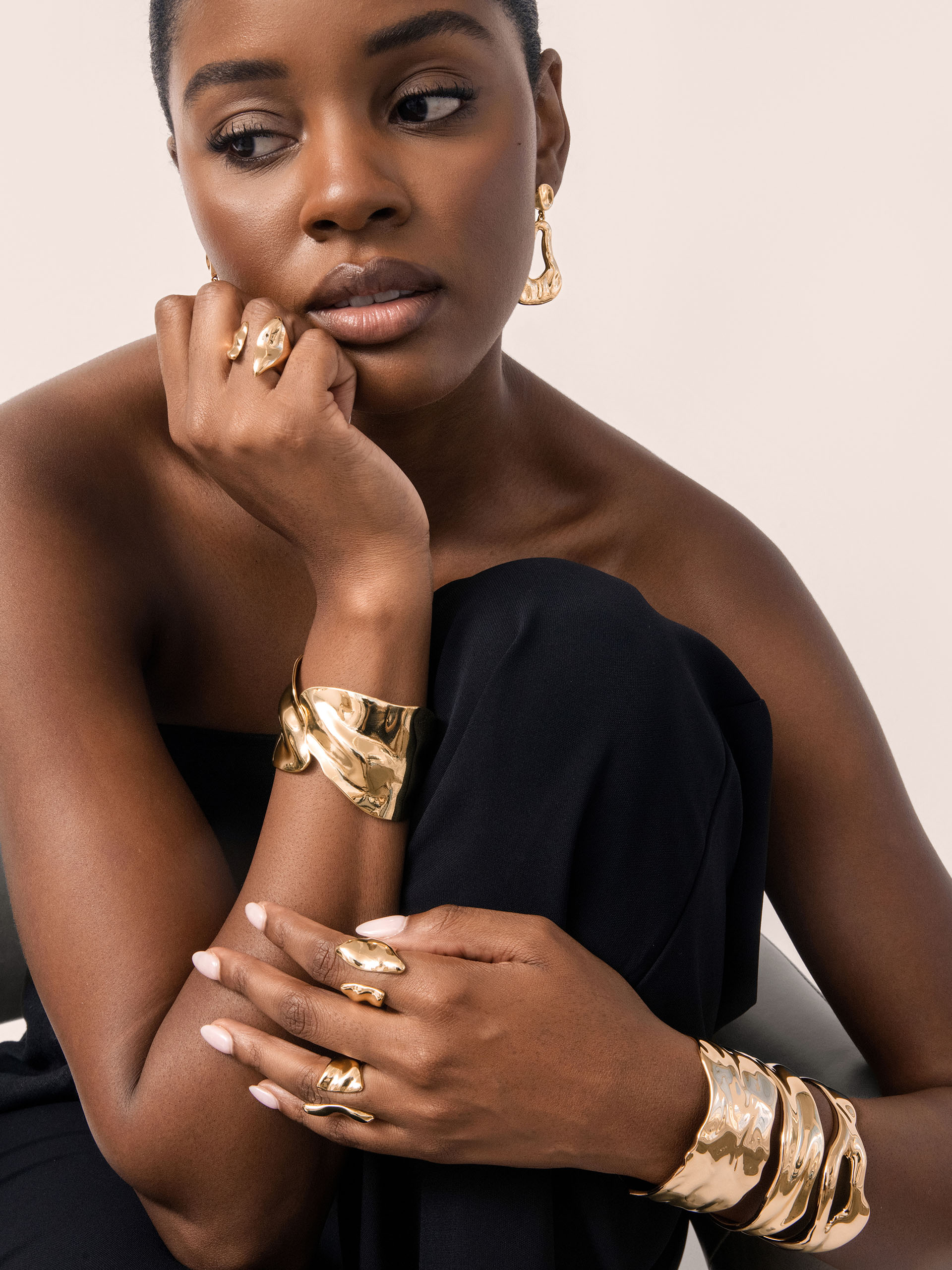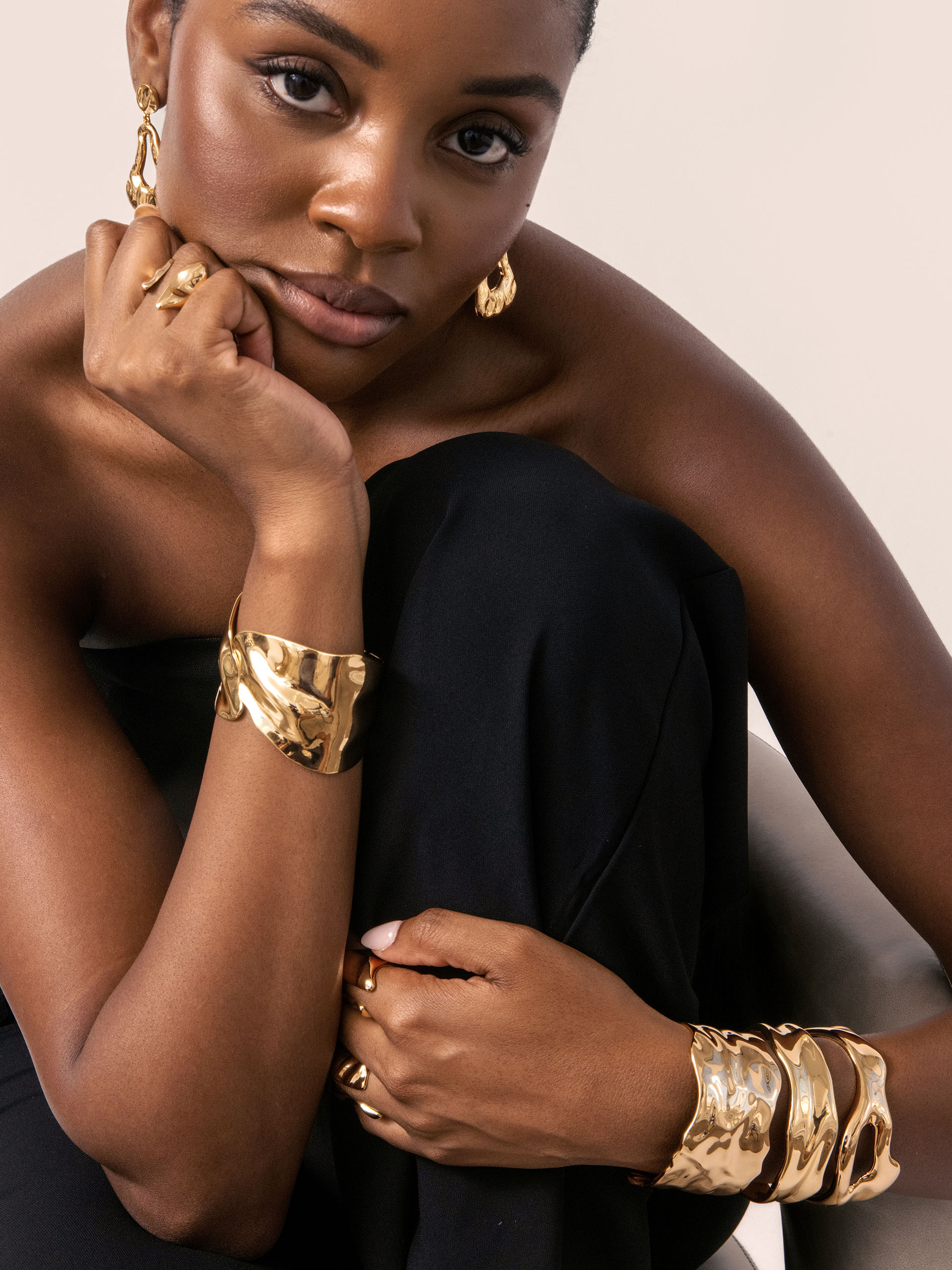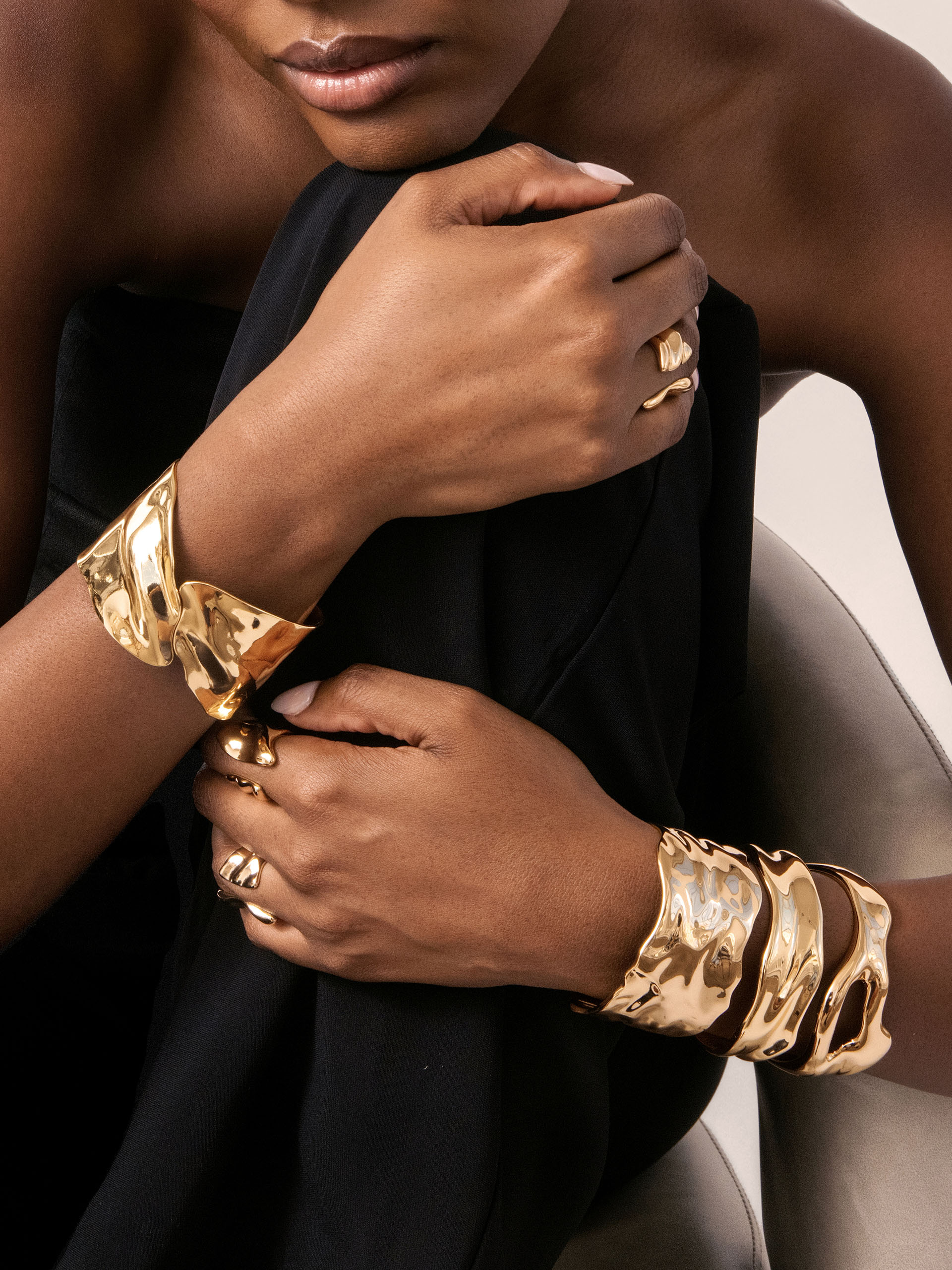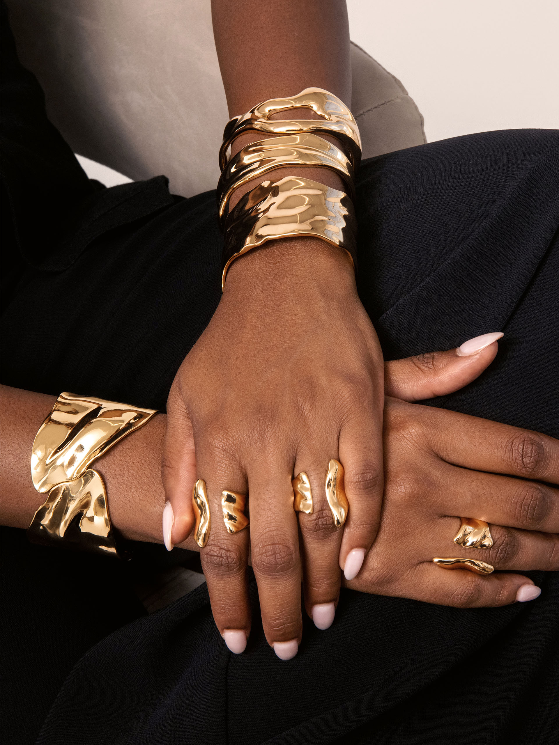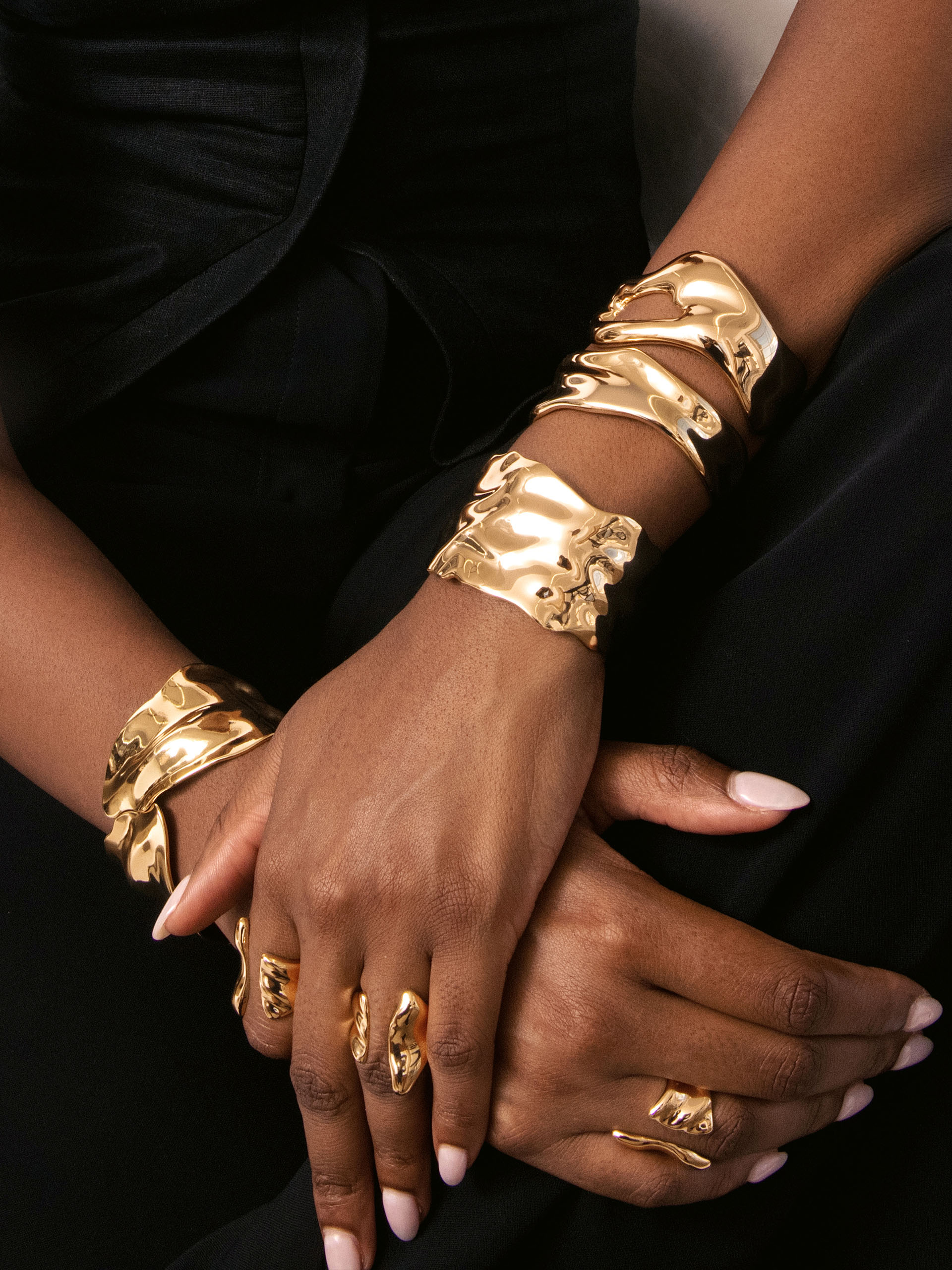 The Fully Stacked Golden Bundle is your ultimate arm party, featuring four of our best-selling 18k gold plated cuffs. Finished with our customer-favorite Liquid Luxe Ring, this bundle delivers a bold, radiant stack you’ll wear on repeat.
