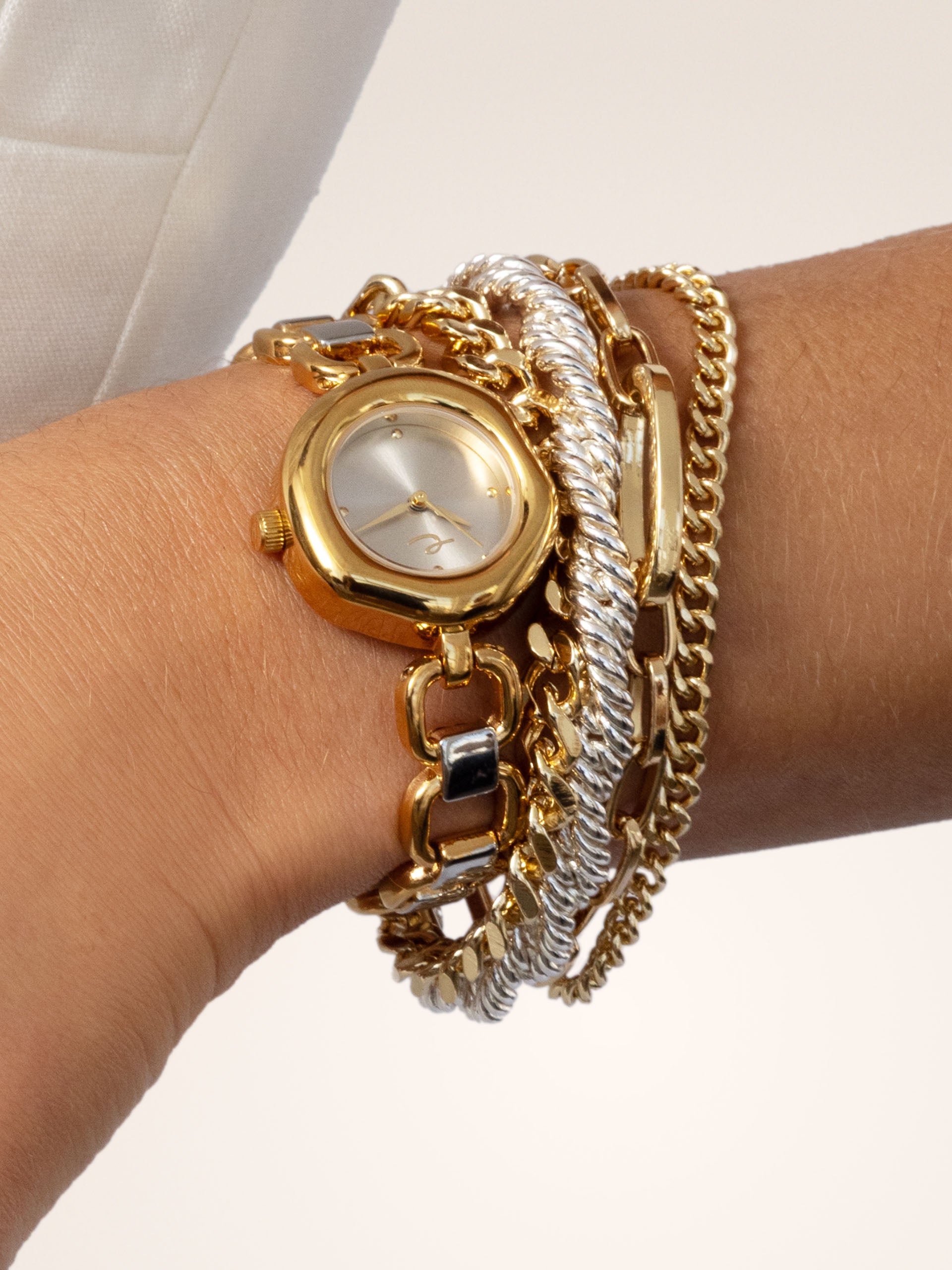 Open Circle Bracelet Watch in Mixed Metal