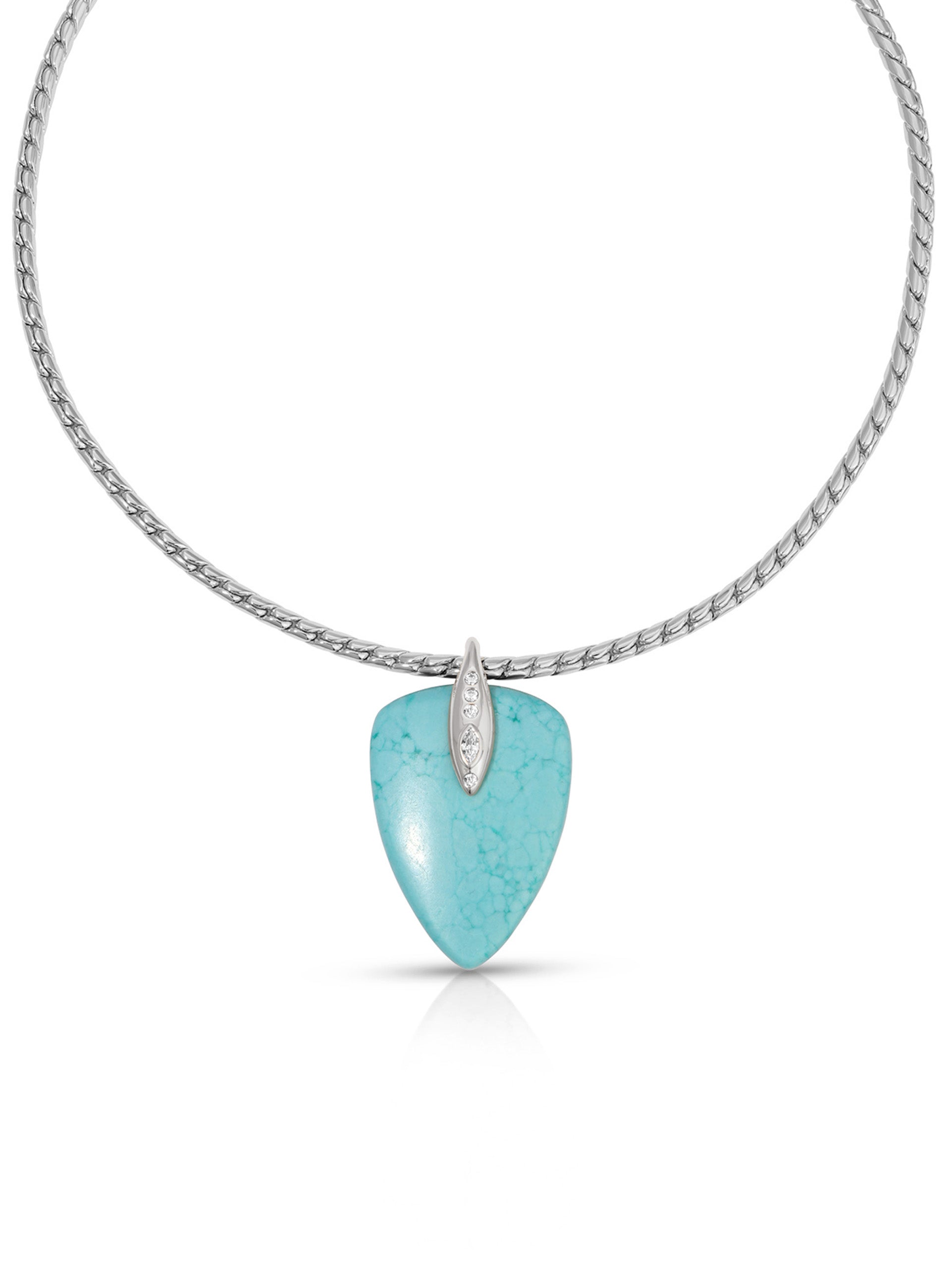 Embrace the spirit of the West with the Turquoise Solstice Pendant Choker, where vibrant turquoise meets sleek, contemporary design. This piece is among our favorite statement chokers.