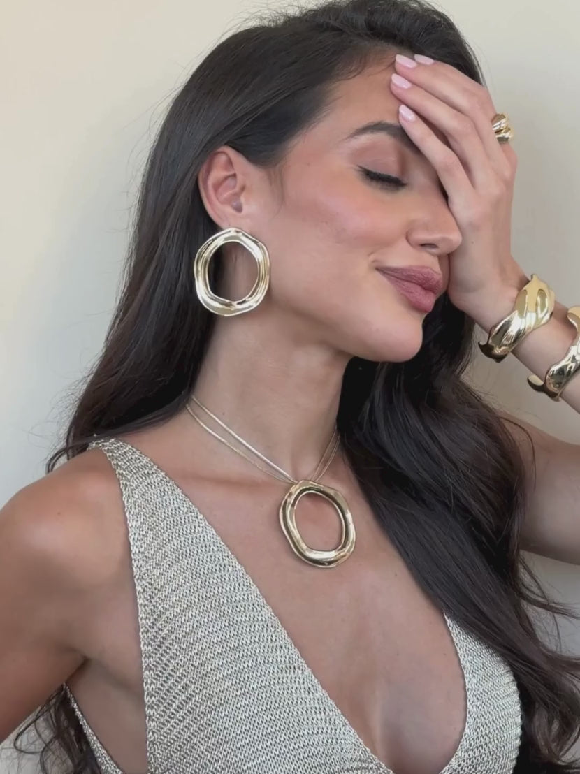 The Open Circle Necklace features a bold, naturally ridged pendant that captures attention with its unique texture. With two chains in one, it effortlessly gives you a layered look. Soaked in real 18k gold for durability and luster. A multi-time best seller, the Open Circle Necklace is a go-to statement necklace that you will come to rely on.