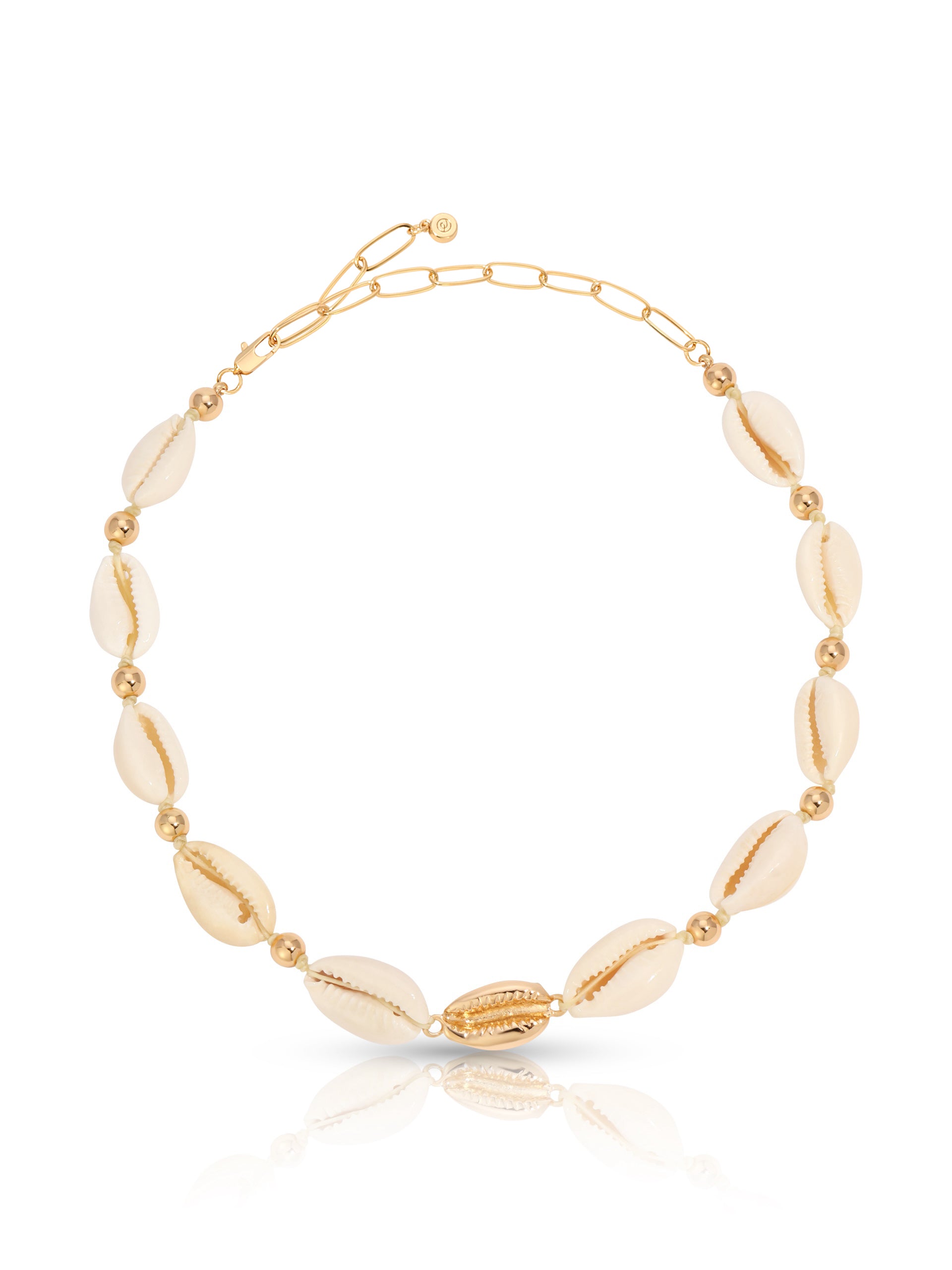Embrace coastal vibes with the Out to Sea Cowrie Shell Necklace, featuring natural cowrie shells and a touch of boho-chic style. This versatile accessory effortlessly captures the essence of the ocean, perfect for adding a beachy flair to any outfit.
