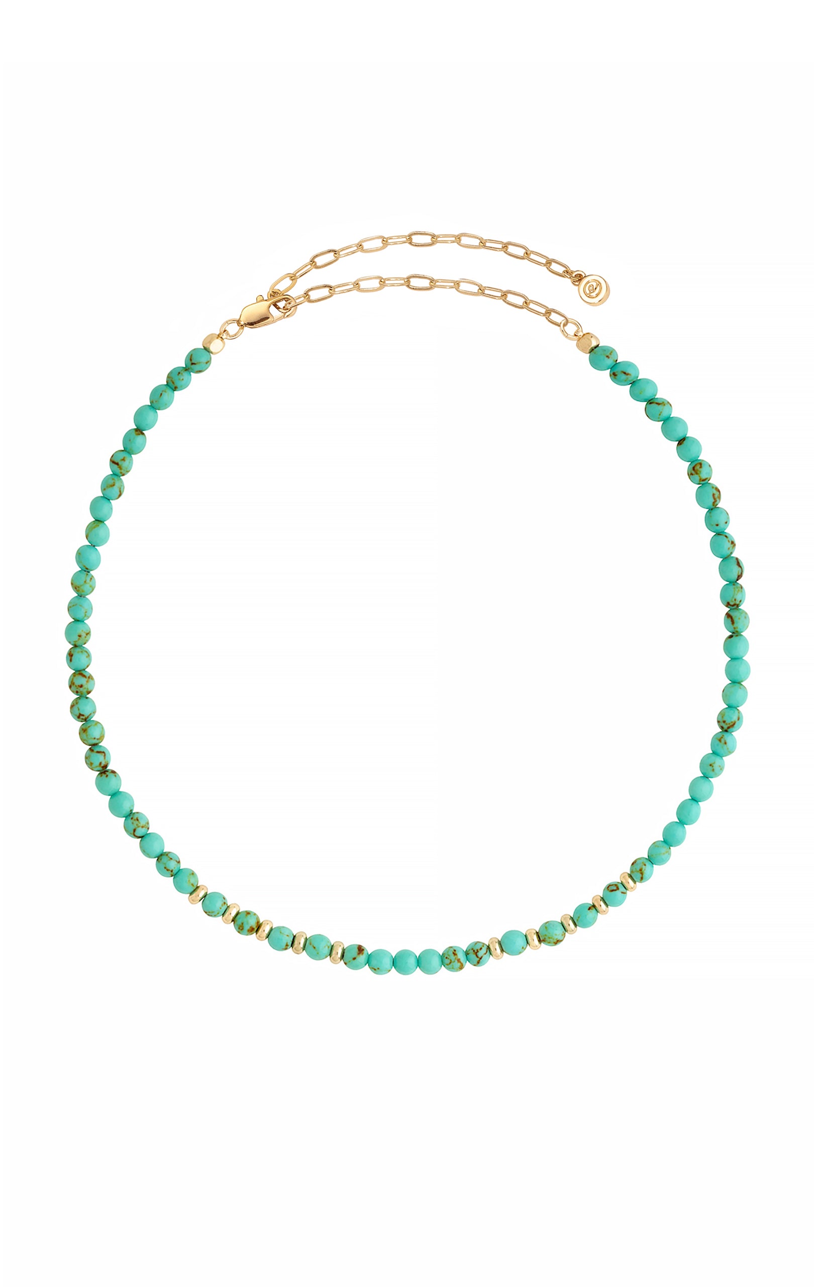 The Still Surprise You Choker features stunning turquoise semi-precious gemstones, offering a vibrant splash of color and elegance.