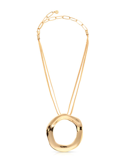 The Open Circle Necklace features a bold, naturally ridged pendant that captures attention with its unique texture. With two chains in one, it effortlessly gives you a layered look. Soaked in real 18k gold for durability and luster. A multi-time best seller, the Open Circle Necklace is a go-to statement necklace that you will come to rely on.