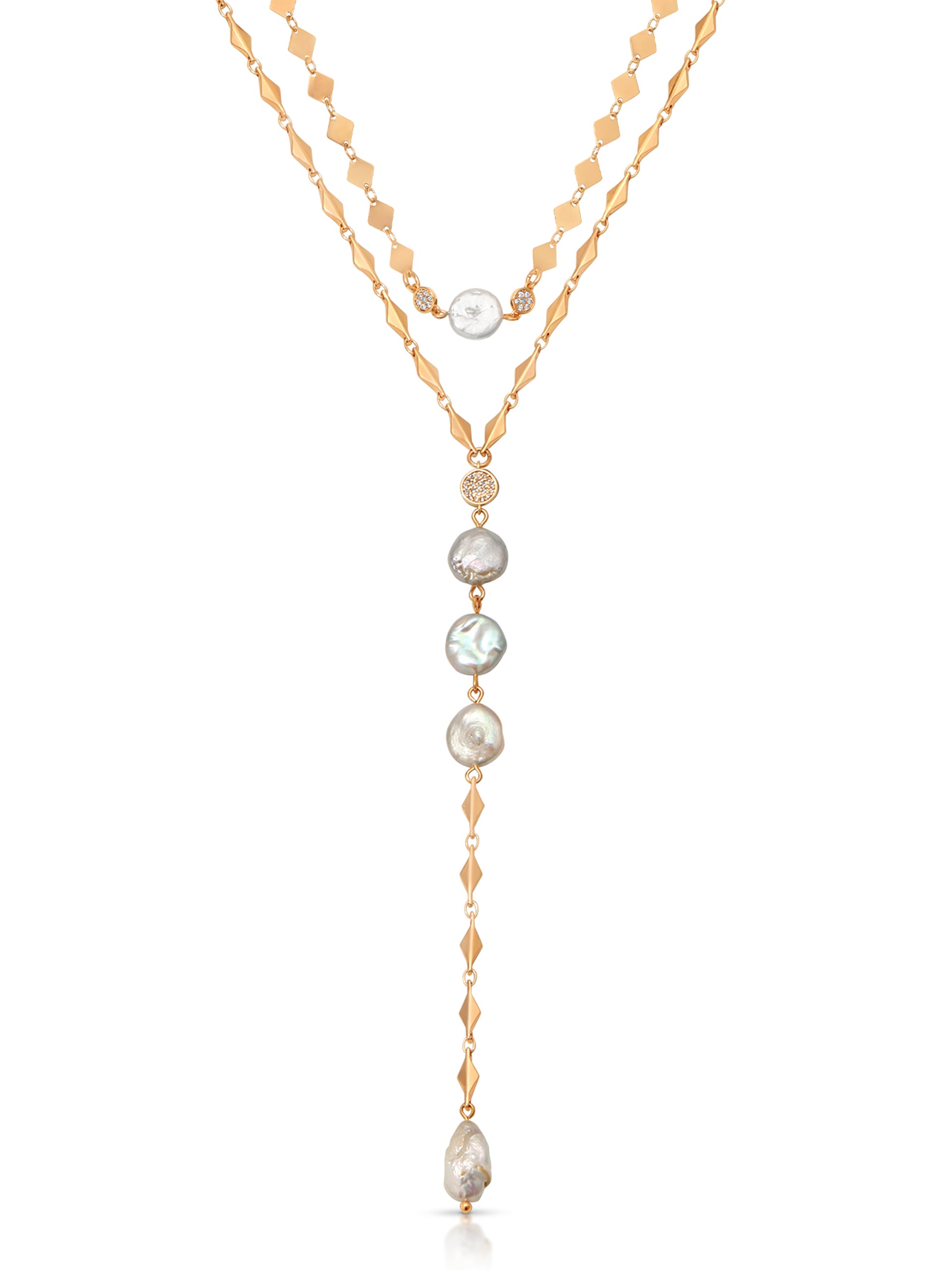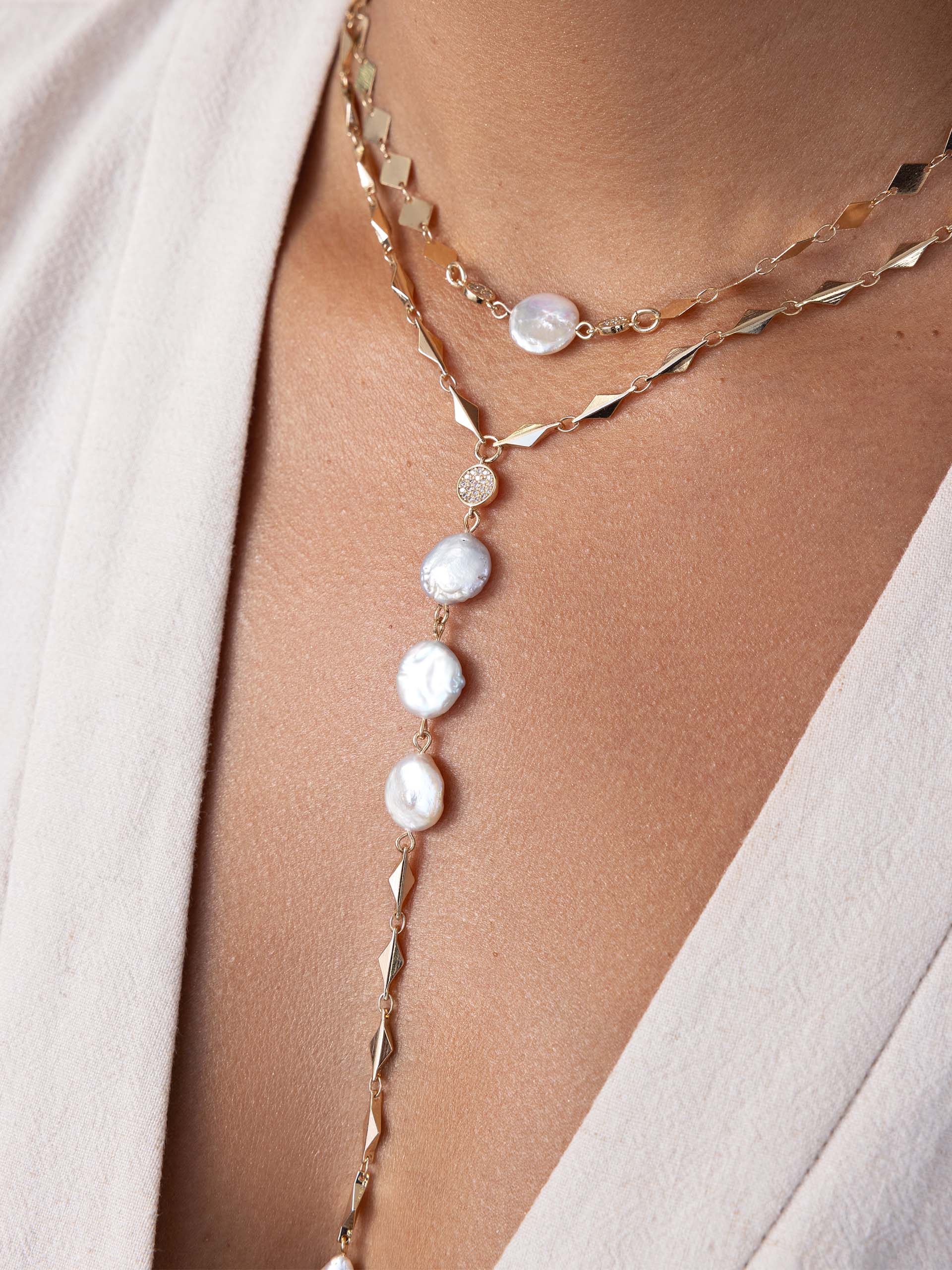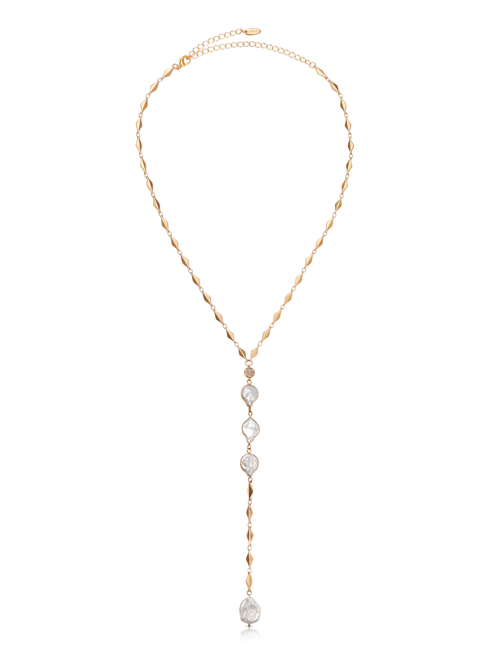 Channel effortless elegance with the Summer Dreamin' Freshwater Pearl Necklace Set, featuring a chic lariat design adorned with lustrous freshwater pearls and 18k gold plating.