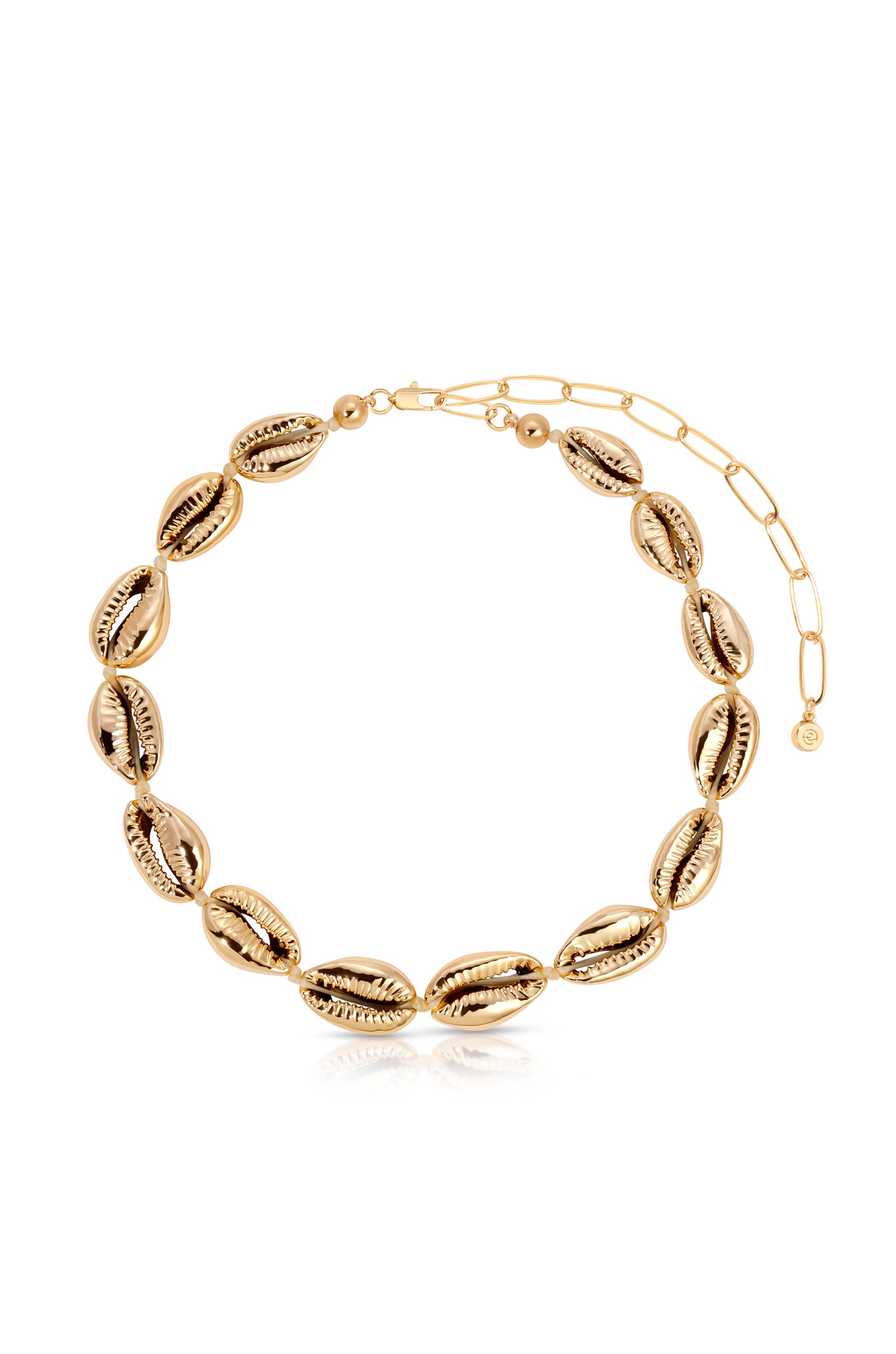 Elevate your beach-inspired style with the Cowrie Shell Necklace, featuring genuine cowrie shells cast in 18k gold plating. This trendy accessory brings a splash of fun and flair to any outfit, making it a must-have for your jewelry collection.