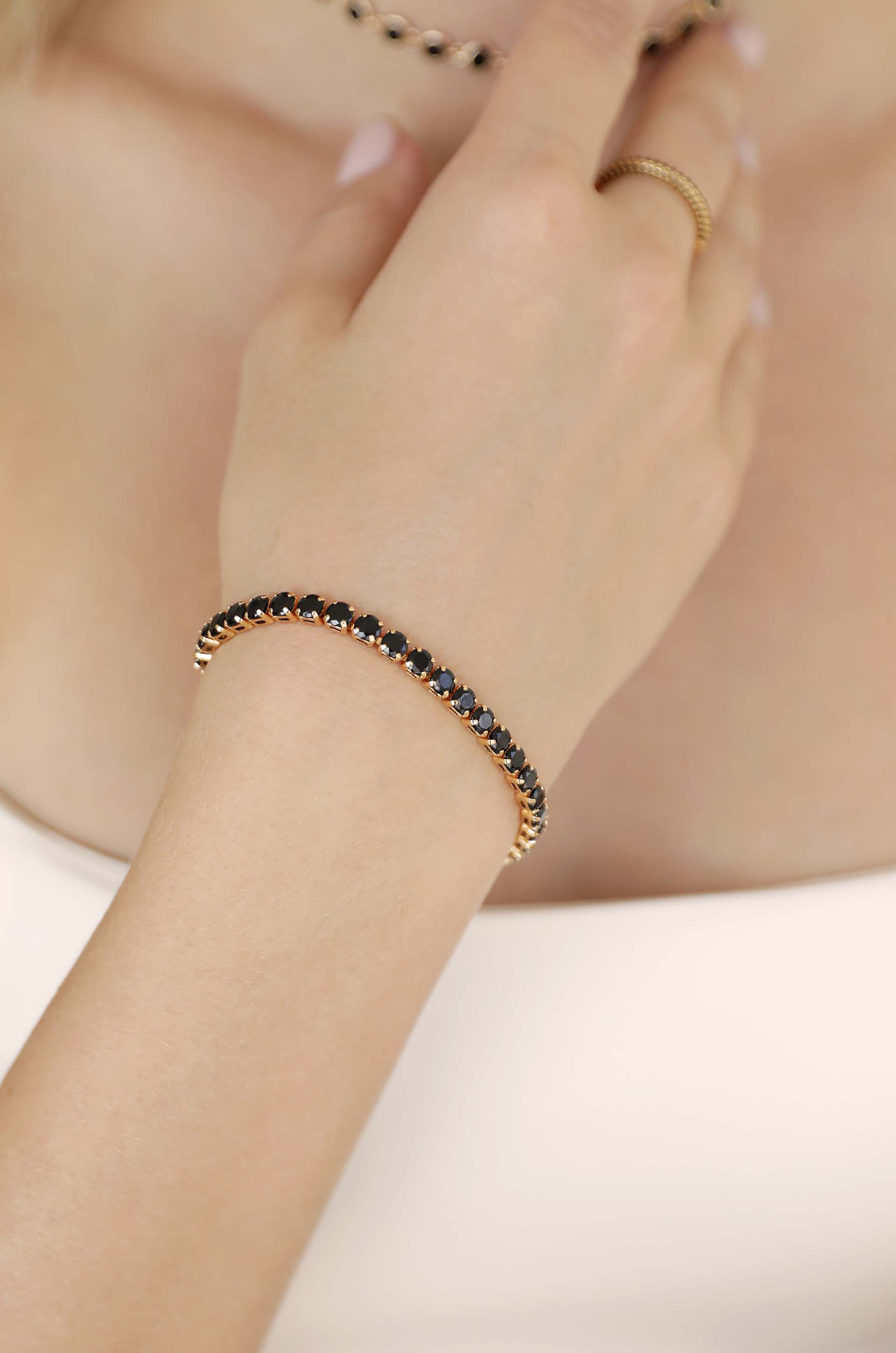 Black Crystal with 18k Gold Plating / One Size