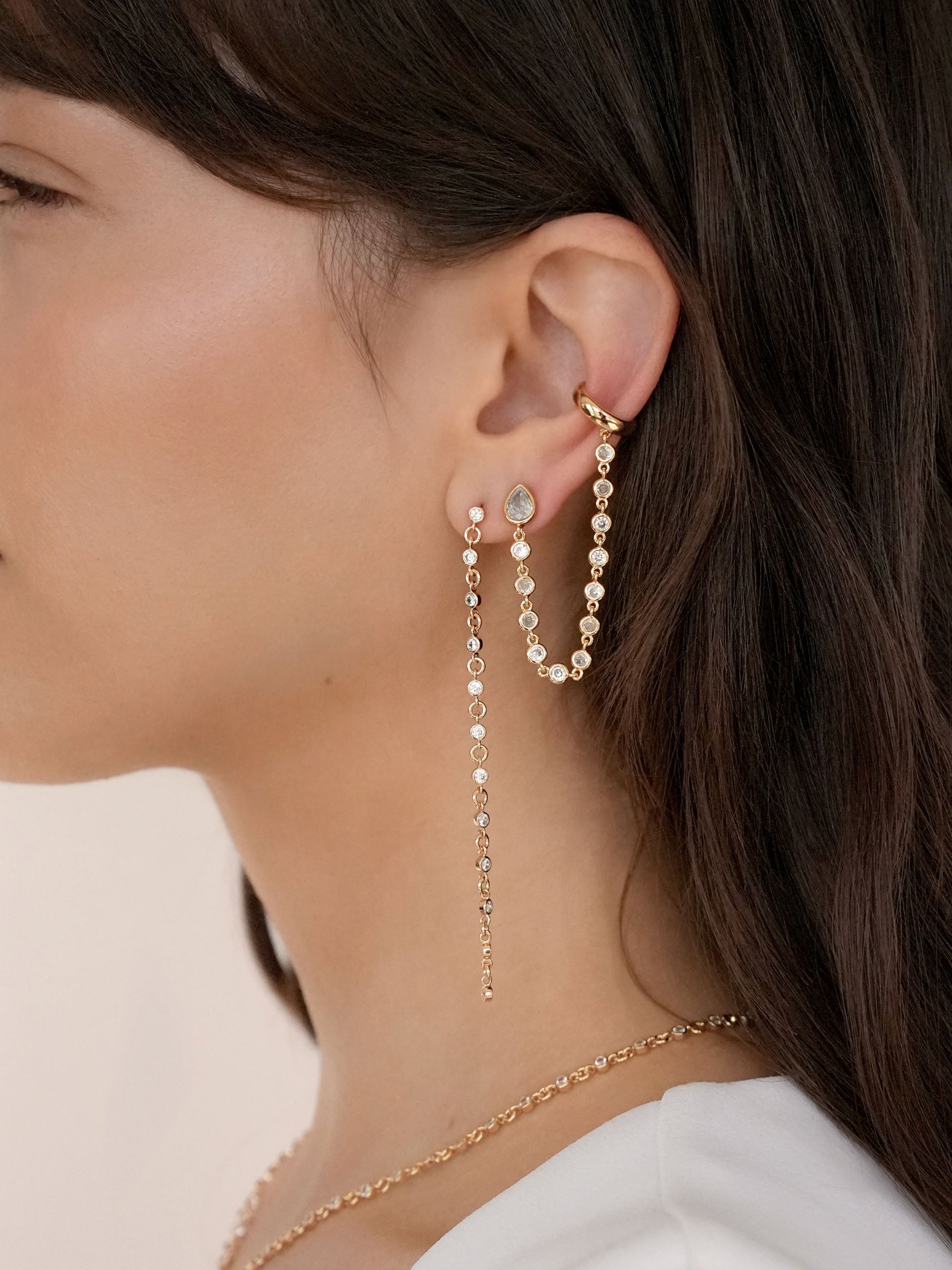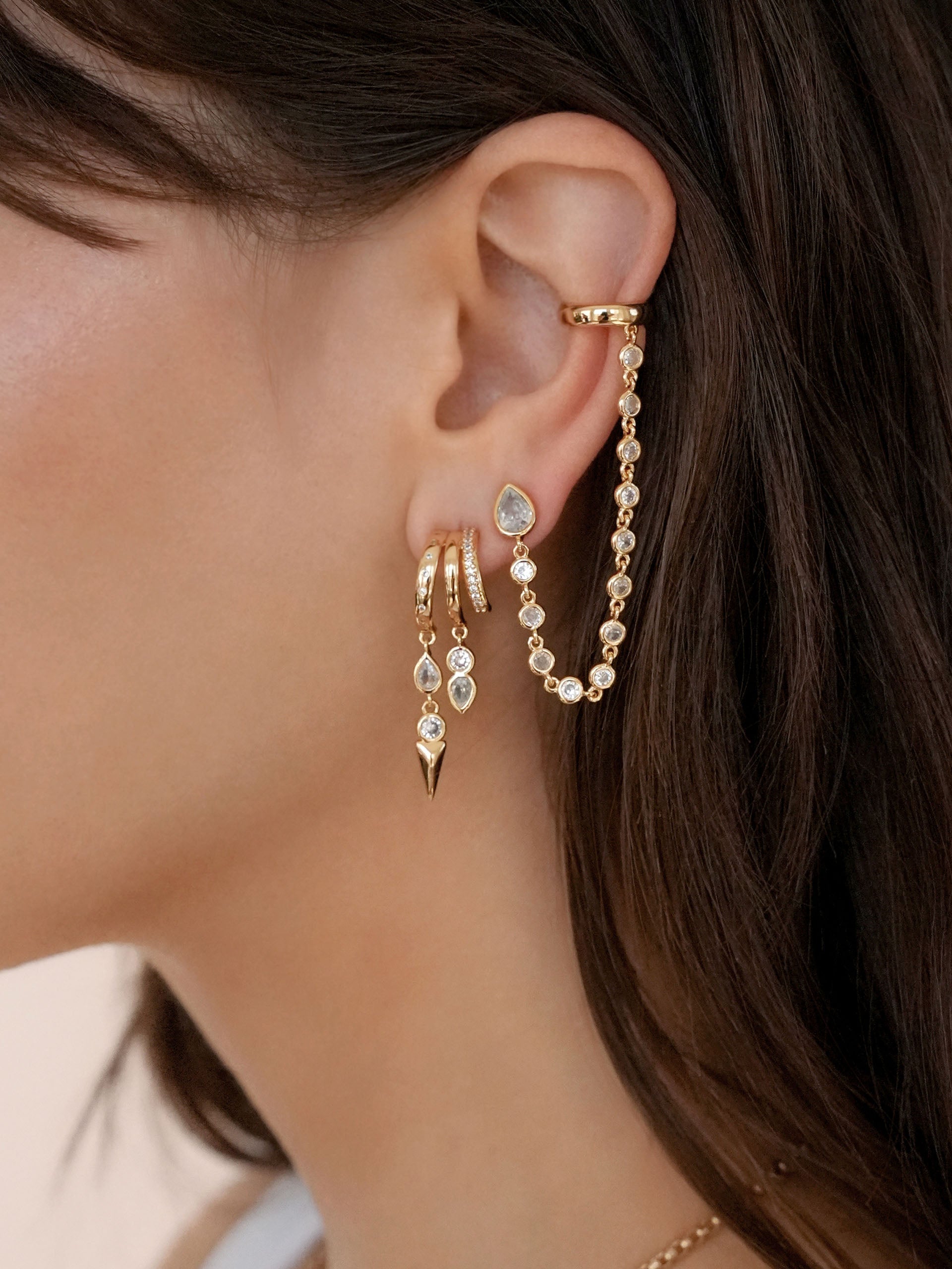 Ear Cuff Crystal Chain Stud